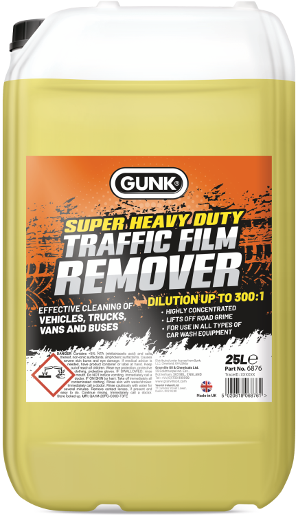 Gunk Traffic Film Remover is formulated to remove heavy road grime from trucks, vans and buses especially curtain sided trucks. Suitable for use with all types of vehicle wash systems.