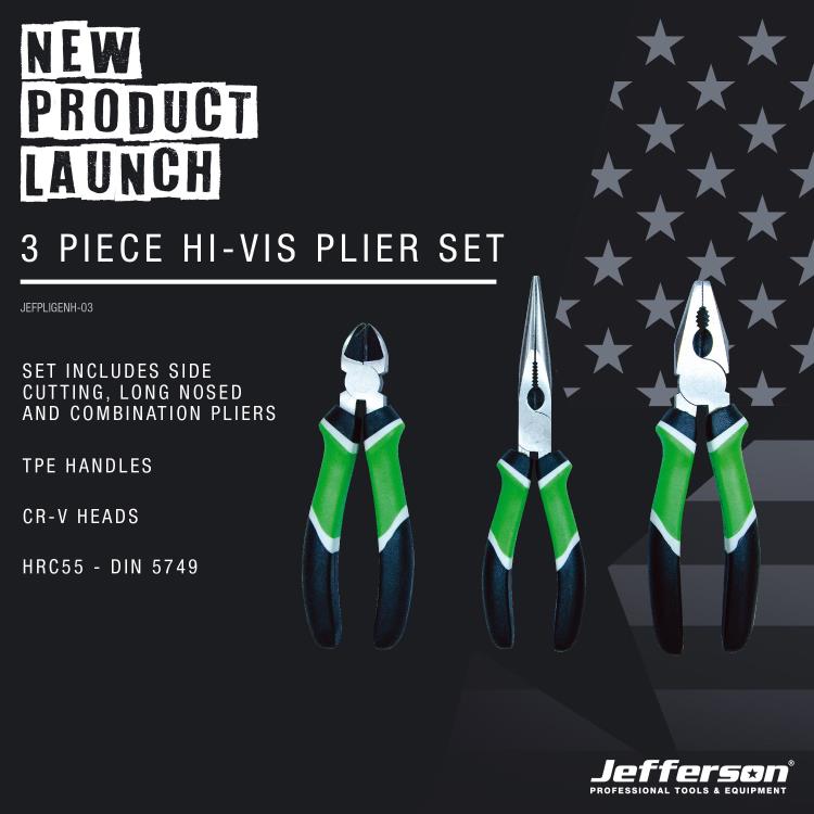Jefferson 3 Piece Hi-Vis Plier Set (Side Cut Long Nosed Combination) JEFPLIGENH-03-JEF