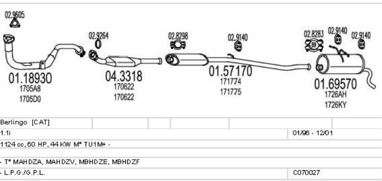 - 0027 Berlingo Benzina Kat 1.1i From 01/01/1996 To 01/12/2001 1124cc 60hp 44kw TU1M+ MAHDZA, MAHDZV, MBHDZE, MBHDZF L.P.G./G.P.L.